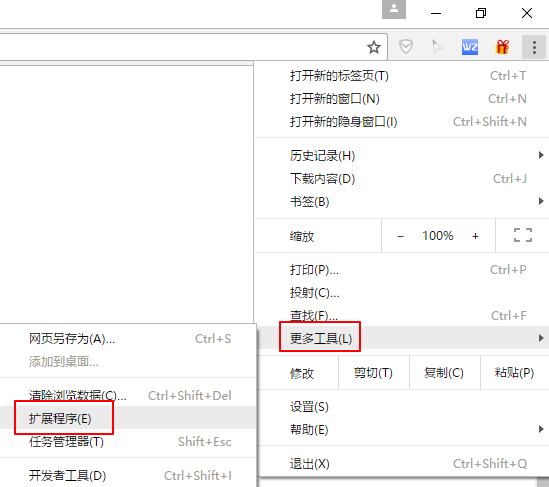 从右上角菜单->更多工具->扩展程序可以进入 插件管理页面,也可以直接在地址栏输入 chrome://extensions 访问。